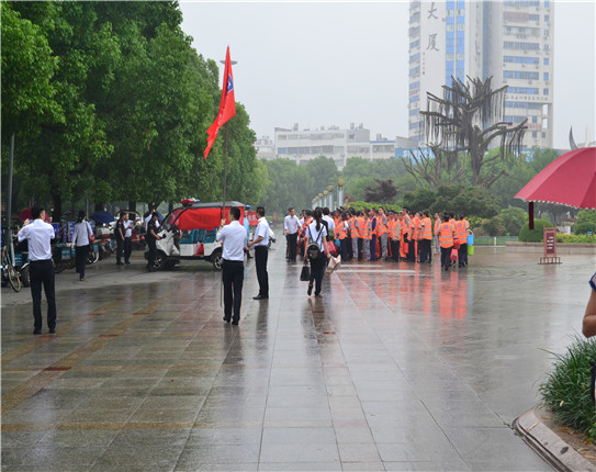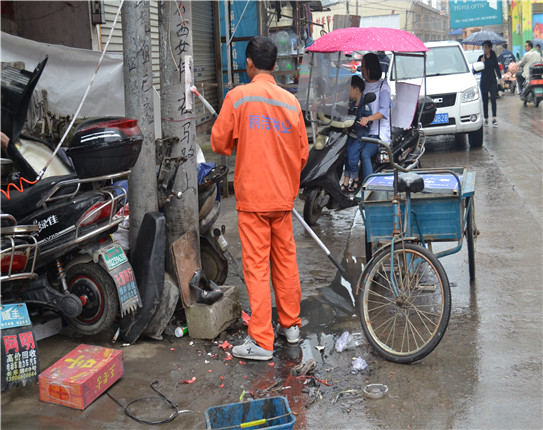 天空飄起了毛毛細(xì)雨,但絲毫沒有影響我們要為城市“美容”的干勁。