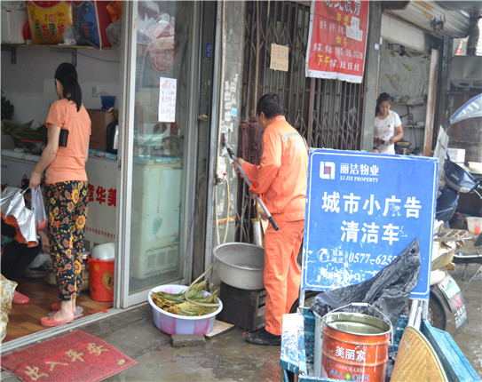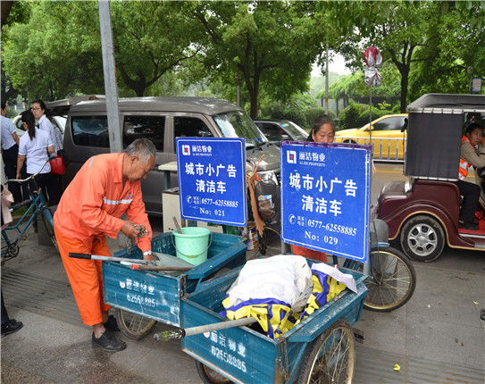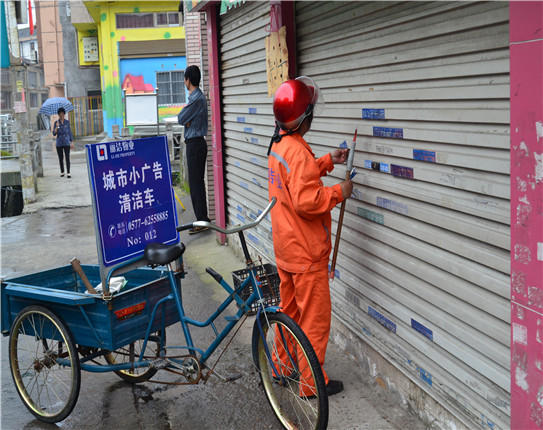 在城市公共區(qū)域隨意粘貼的小廣告被人們稱為“牛皮癬”。在樂清市區(qū)到處可見的“牛皮癬”嚴(yán)重地影響了市容市貌,因此我們麗潔物業(yè)公司在5月24日這一天特地開展以“美麗樂清,你我同行”為口號(hào)清除城市道路“牛皮癬”的公益活動(dòng)。本次公益活動(dòng)目的和宗旨只有一個(gè):傳播“攜手共創(chuàng)和諧衛(wèi)生、文明的人居環(huán)境”的人文精神。