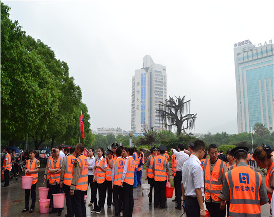 一大早我們麗潔物業(yè)的200多員工及領(lǐng)導(dǎo)按照本次活動(dòng)的流程,陸續(xù)在晨沐廣場(chǎng)集結(jié),簽到。