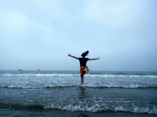 銀灘真的美的像一幅畫,我們這位同事感覺要一飛沖天啊,哇哈哈哈。