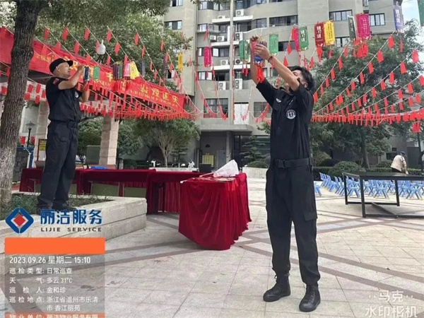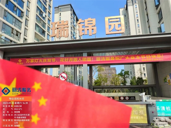 “良辰美景迎中秋 盛世華誕賀國(guó)慶”,為讓業(yè)主感受到中秋、國(guó)慶雙節(jié)的濃厚節(jié)日氛圍,麗潔服務(wù)工作人員提前在多個(gè)小區(qū)出入口、主干道等區(qū)域懸掛中秋國(guó)慶條幅及鮮紅的五星紅旗等裝飾,不僅扮靚了小區(qū),也成為了一道靚麗的風(fēng)景線,讓業(yè)主家人們感受到了濃濃的節(jié)日氣氛。