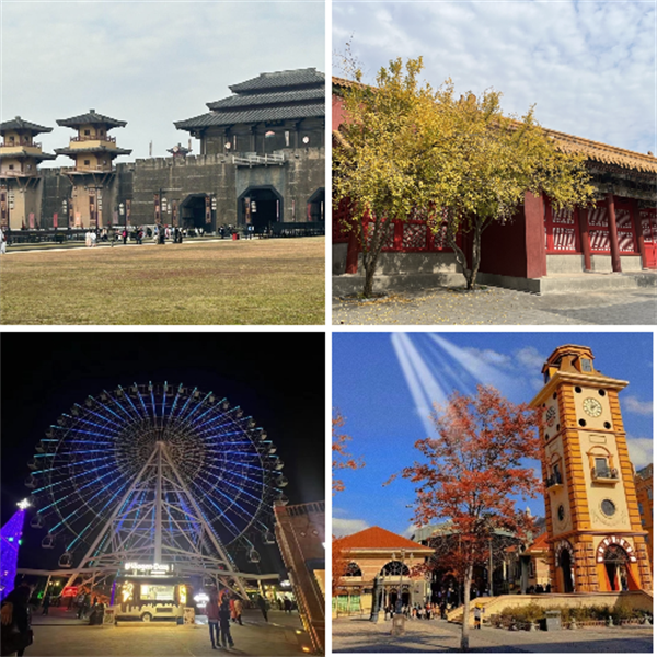 秦王宮、明清宮苑、夢外灘、夢幻谷游樂場看,五步一樓,十步一閣,鱗次櫛比的萬國建筑群落,琳瑯的店鋪、穿梭的電車,童話世界般的布景和游玩設(shè)施,從古至今,讓人置身于夢幻的世界。